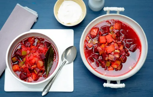 - Servir la soupe avec la crème aigre froide.