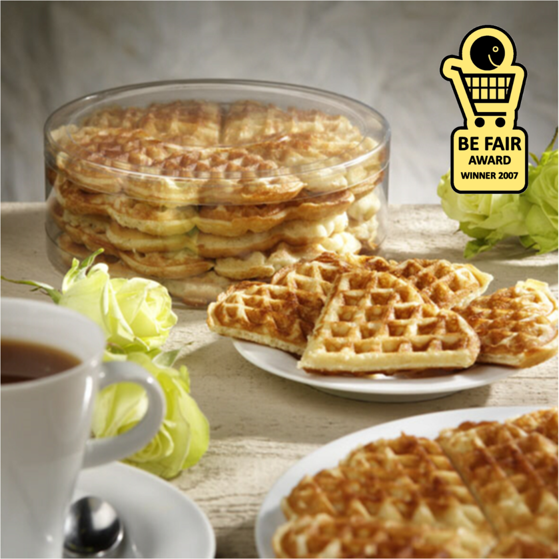 Als winnaar van de Be Fair Award in 2007 en de Bio Award in 2009 bieden wij verschillende assortimenten koekjes, wafels, galetten, speculoos, kokosrotsjes, peperkoeken...