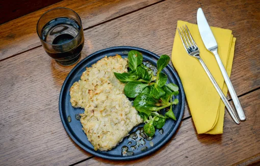 - Druk stevig aan met schone handen of een spatel, om een grote koek te vormen